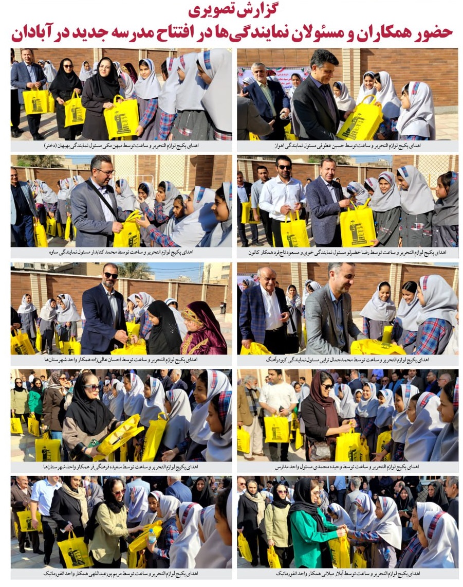 همزمان، مدرسه ۹ کلاسه آبادان نیز افتتاح شد و به مجموعه مدارس جدید استان خوزستان پیوست.