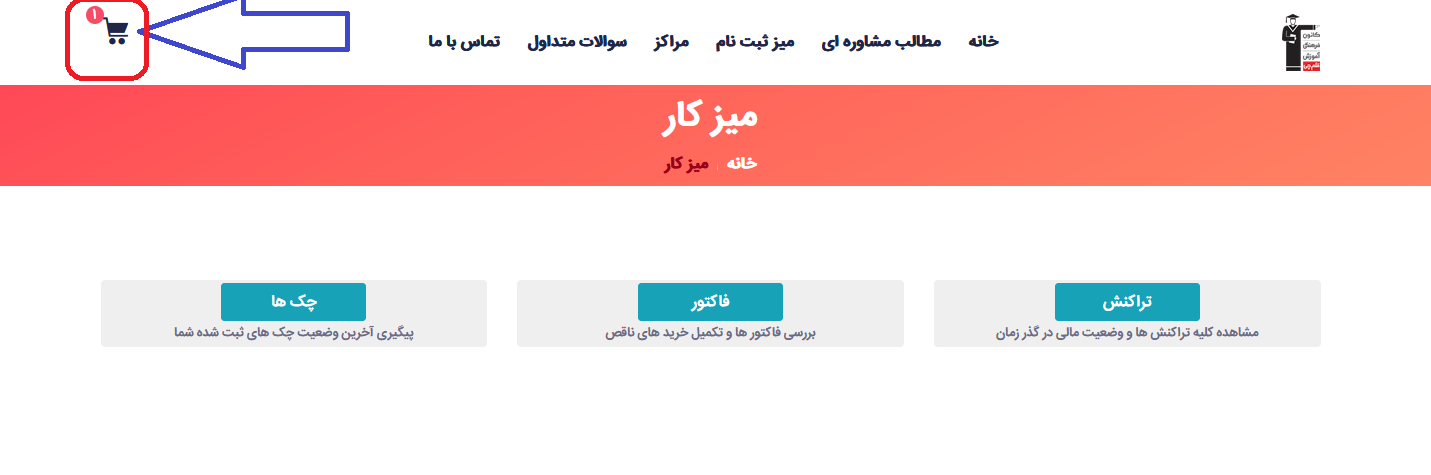 9 - وارد میز کار خود می شوید . وارد سبد خرید خود شوید در صورتی که قبلا محصولی را به سبد خرید اضافه کرده باشید عدد 1 بر روی سبد خرید نمایش داده می شود.